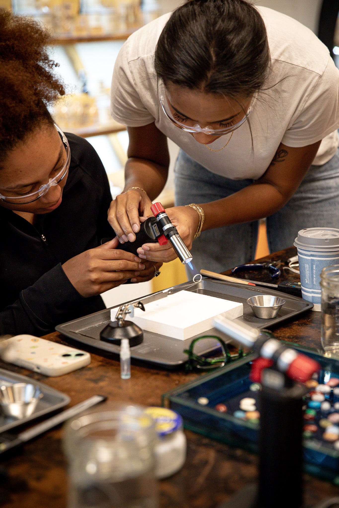 A liability waiver must be signed by each participant before the beginning of the class. Making jewelry is inherently dangerous, there are chemicals and fumes present, due to this we are unable to have any children under the age of 12 or pets in the space. By signing our waiver you understand you are responsible for your own safety under our instruction.